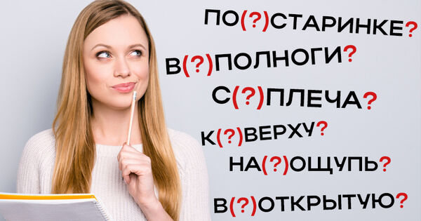 Наречия придают тексту выразительность, делают высказывание более ярким, живым и помогают точнее передать мысль. Вспомним правописание таких наречий, как «с(?)плеча», «к(?)верху», «на(?)ощупь», «в(?)открытую», «по(?)старинке», «в(?)полноги» и др.