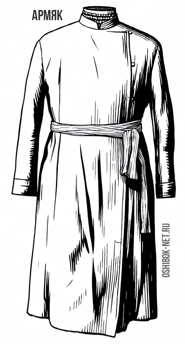 Из татарского языка в русский перекочевал армя́к – крестьянская мужская верхняя одежда из толстого сукна в виде долгополого кафтана без сборок, изготовленного из грубой шерстяной ткани. Буквально армяк – «одежда из верблюжьей шерсти»: «На Андриане был новый верблюжий армяк…» (И. Салов).