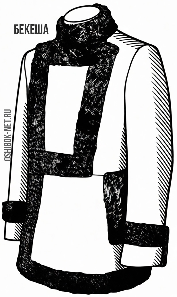 Ещё один вид верхней мужской одежды – беке́ша: «… на Сашке была теплая старинная, времен гражданской войны, отцовская меховая бекеша…» (Ю. Трифонов). Сущ. бекеша в значении «мужское пальто на меху со сборками в талии», пришло из польского, а происходит оно от фамилии венгерского полководца Каспара Бекеша, носившего такую одежду.