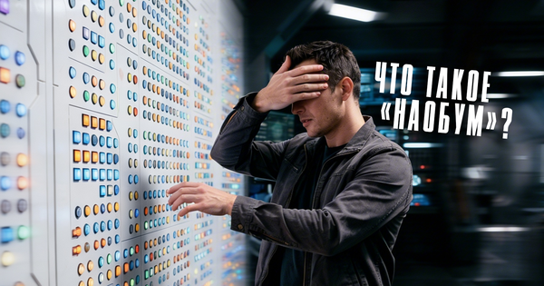 Разговорное наречие наобум – «не раздумывая, не размышляя; как придётся, как выйдет; наудачу» – префиксальное производное от известного в диалектах обум (об + ум) со значением «зря, наудачу». В словаре В. И. Даля сказано: «Обум - нареч. зря, очертя голову», а глагол обумить трактуется двояко – как «опомниться», «поумнеть», так и «выжить из ума, одуреть, оглупеть, стать забывчивым, беспамятным».